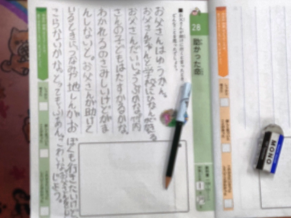 道徳の時間は、教科書の教材文「助かった命」を学習しました。