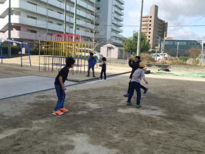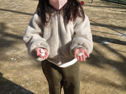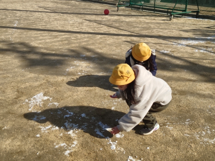 運動場に少し残った雪で遊んでいる子どももいました。