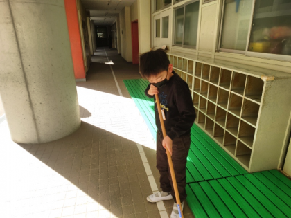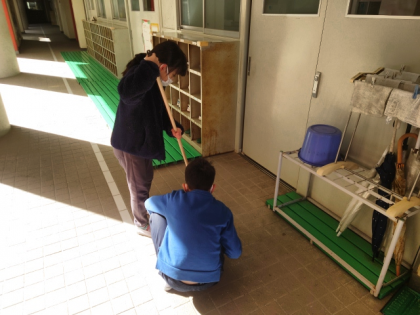 休み時間に、自分からすすんでお掃除をしている子どもたちもいます。