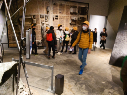 ピースおおさか館内の見学中。