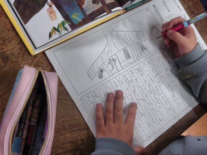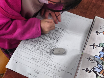 国語科では、「かさこじぞう」の学習をもとに、「こぶとりじいさん」「うらしまたろう」「したきりすずめ」など、いろいろなむかし話の本を友達に紹介する文章を書いています。