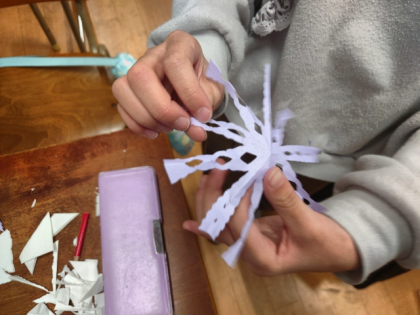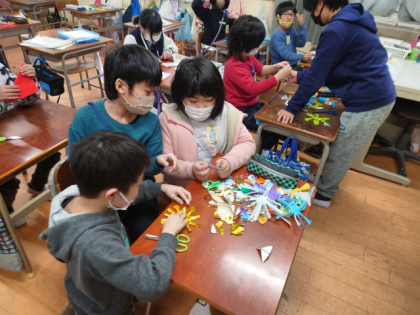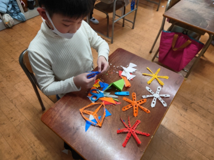 図工科の時間は、「手ぶくろ」や「雪の結晶」などを題材に、冬らしい作品を制作しています。