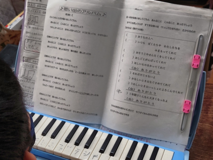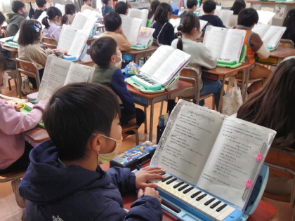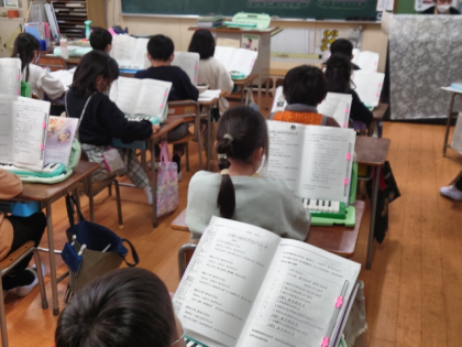 音楽科の時間は、鍵盤ハーモニカで「喜びの歌」を練習したり、「思い出のアルバム」を歌ったりしました。
