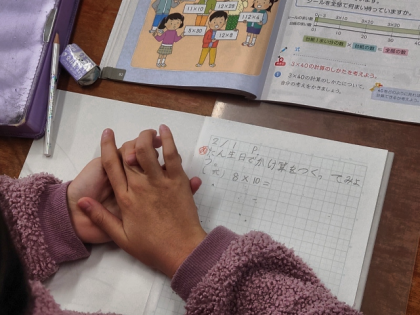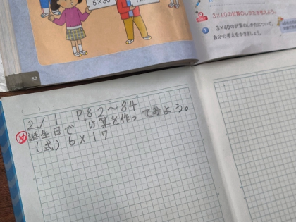 算数科の時間は、自分のたん生日の数を使ってかけ算の式をつくりました。