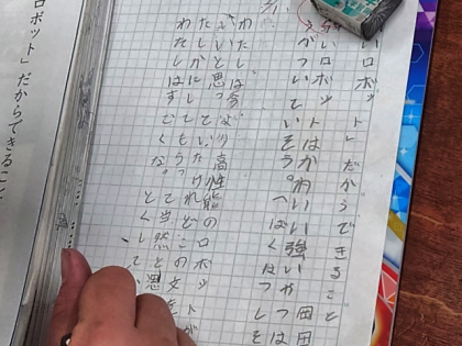 国語科の時間は、説明文「弱いロボットだからできること」を初めて読んだ感想(不思議に思ったことや、感じたこと、新たな発見、「なるほど」と思ったことなど)をノートに書いています。