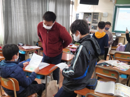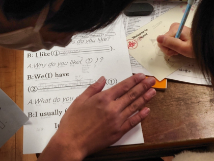 英語科の時間は、C−NET(ネイティブ)の先生に教室に来ていただき、学習しました。