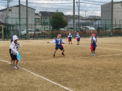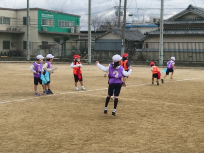 体育科の時間はみんなで「おたから はこび おに」をしました。