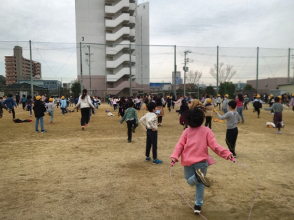 8日(水)までの1週間、全校児童が20分休みに運動場に集まり、なわとびをしています。
