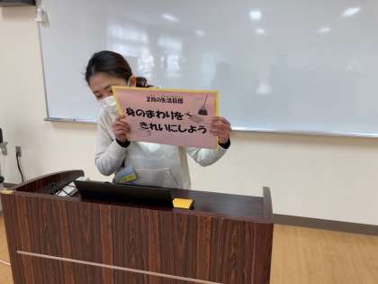 最後に、教務主任から、保護者の方から「子どもたちが公園でごみ拾いや掃除をがんばっているのを見た」との連絡があったことを全校の子どもたちに紹介しました。