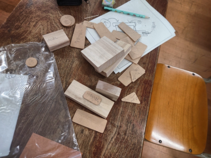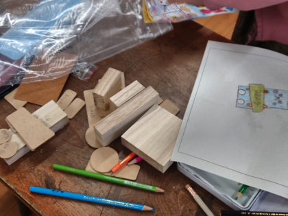 図工科の時間には、木切れを組み合わせ、くぎ打ちをして作品を作ります。
