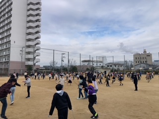 今日も外で元気になわとびをして、体力向上に努めています!