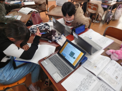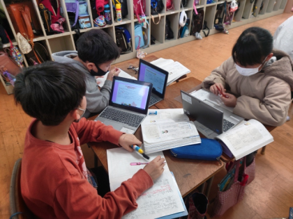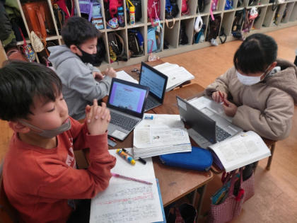 国語科の時間には、外国のことを調べて紹介する学習をしています。
