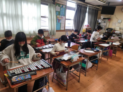 音楽科の時間は、「エーデルワイス」の合奏練習をしました。