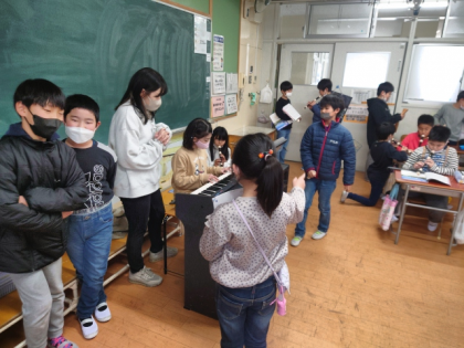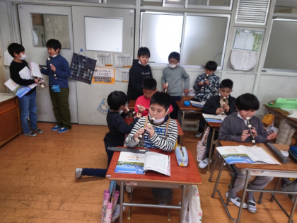 音楽科の時間は、「エーデルワイス」の合奏練習をしました。