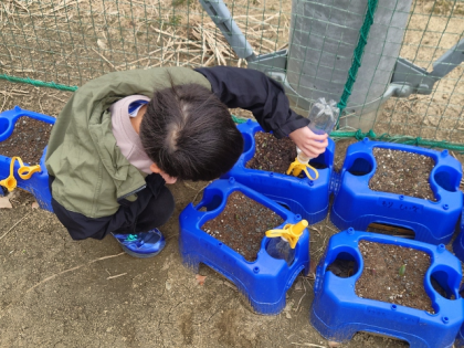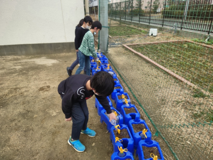 1年生の子どもたちがお花の世話をしています。