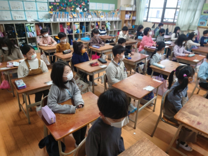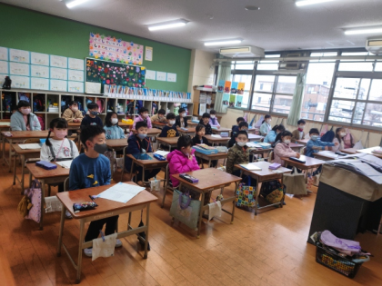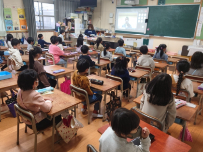 子どもたちは、さっそく姿勢を意識しながら話を聴いています。