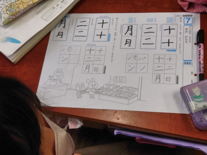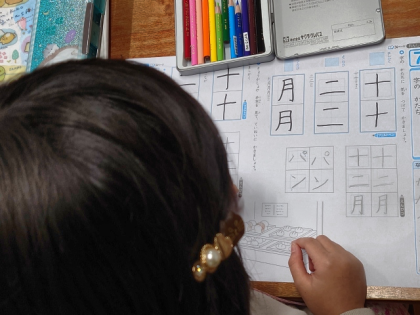書き方の時間には、プリントに「十」「二」「月」などの字を練習しました。