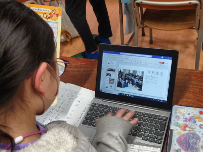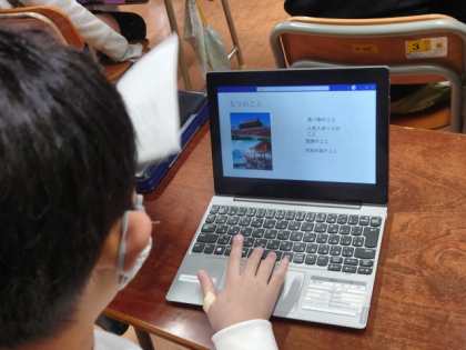 国語科の時間には、外国のことを調べて紹介する学習をしています。