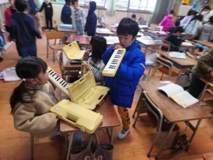 こままわし、鍵盤ハーモニカ、音読・・・1年間でたくさんのことができるようになりました。