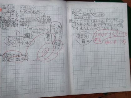 どのようにすれば求められるのか、ノートに図や文で説明を書きました。