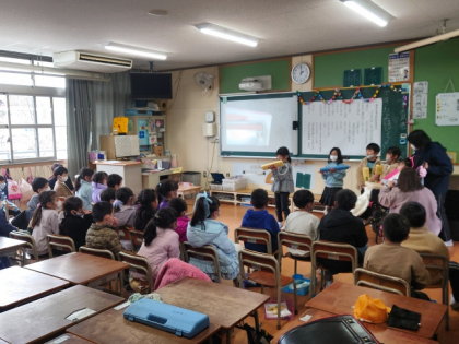 音読や漢字、計算、ダンス、鉄棒、歌など、子どもたち1人1人が1年間でできるようになったことを発表しました。