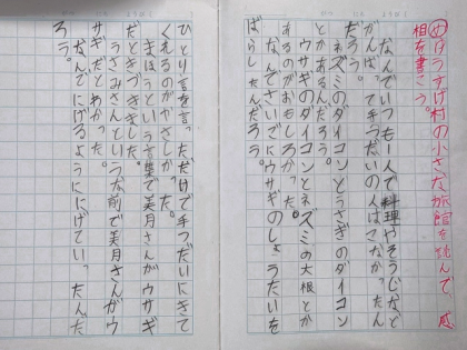 今日は、初めて読んだ感想をノートに書き、書いた内容をお互いに読み合って交流しました。