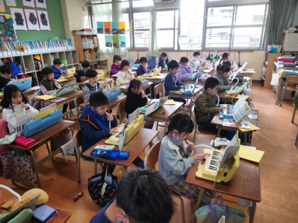 音楽科の時間は、鍵盤ハーモニカで「きらきらぼし」を練習しました。