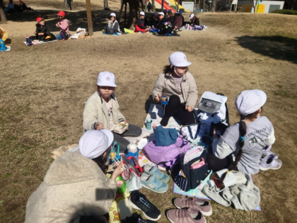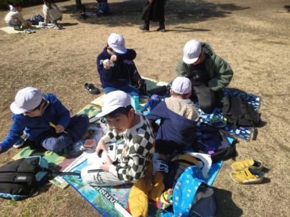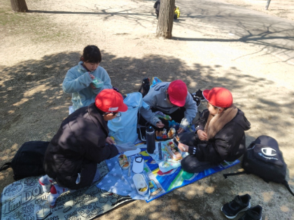 扇町公園で、楽しみにしていたお弁当タイムです。