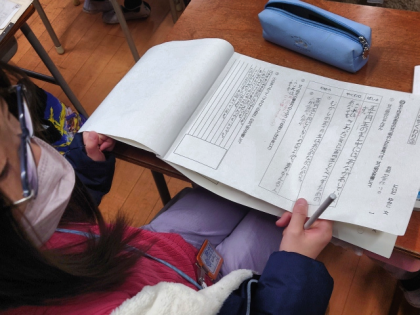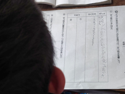 今日は、「プラグの穴」の「場所」や「役割」、「理由」を読み取り、書き方の工夫を見つけたり、読み取ったことをもとに「キャップの穴」の説明文を書いたりして学習しました。