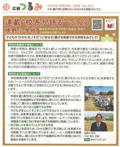 「広報つるみ」3月号に焼野小学校が紹介されます