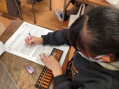 珠算協会の方に教室に来ていただき、「そろばん教室」を行いました。