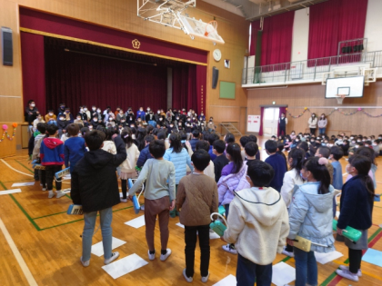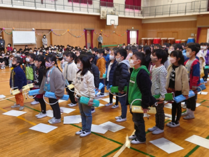 各学年から6年生の卒業をお祝いする気持ちをこめて、歌や合奏、メッセージなどの出し物が披露されました。