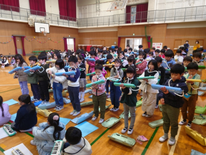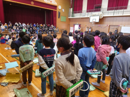 2年生の出し物は、鍵盤ハーモニカの合奏「よろこびの歌」と「世界が一つになるまで」の合唱です。