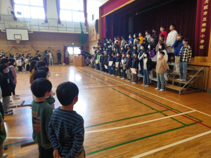 最後に、全校のみんなで焼野小学校校歌を歌いました。