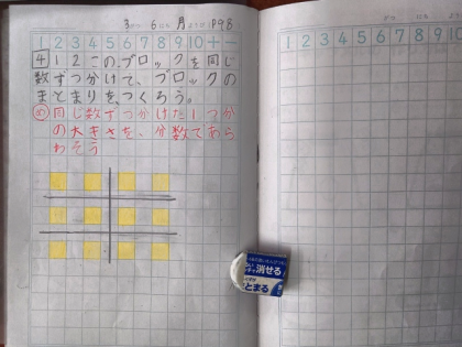 同じ数ずつ分けた1つ分の大きさを、分数で表すことが今日のめあてです。