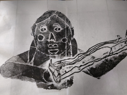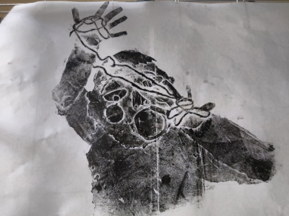 図工科の時間は、「あやとりをしている自分」を題材に、版画の作品を制作しています。