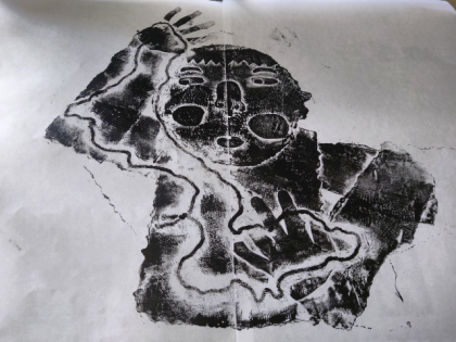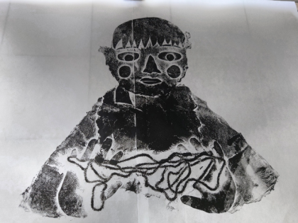 図工科の時間は、「あやとりをしている自分」を題材に、版画の作品を制作しています。