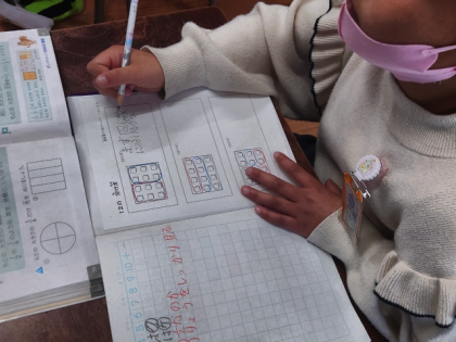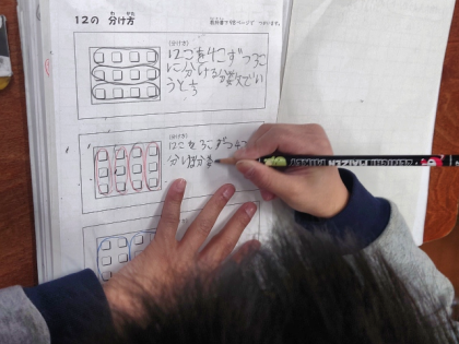 今日は、12このブロックを同じ数ずつ分けて、ブロックのまとまりをつくる問題について考えました。