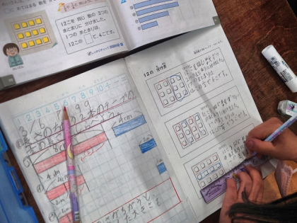 今日は、12このブロックを同じ数ずつ分けて、ブロックのまとまりをつくる問題について考えました。