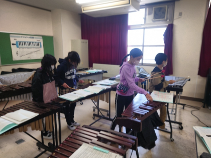 リコーダー、オルガン、打楽器、木琴などのパートに分かれて練習をしました。
