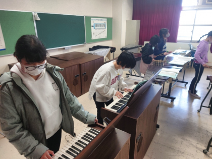音楽科の時間は、合奏曲「キリマンジャロ」の練習をしています。
