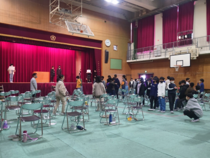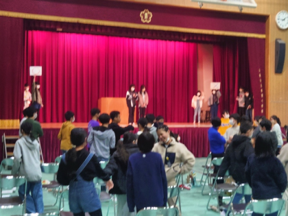5時間目に、6年生2クラス合同で、卒業茶話会を行いました。