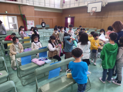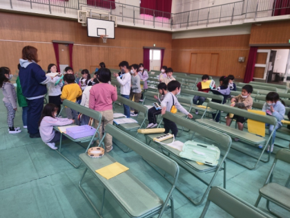 2クラス合同で「きらきらぼし へんそうきょく」の合奏の練習をしました。