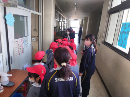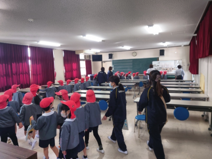 この4月に、学校のおとなりの俊英館第2保育園から焼野小学校に入学する園児たちが本校を見学にやってきました。