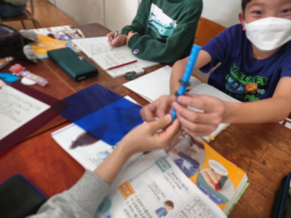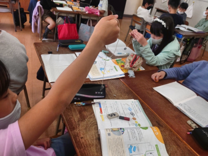 理科の時間は、リング磁石のSきょくとNきょくを探す実験をしました。