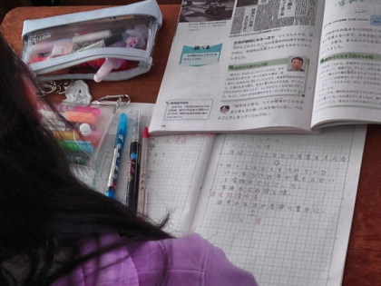 社会科の時間は、高度経済成長のころ京都市を流れる鴨川がなぜよごれていたのか教科書などを使って調べました。