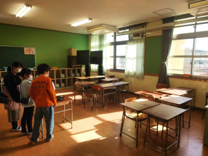 今日のゲームは画面にうつった教室の中の風景から、宝箱がどこにあるのか当てるクイズです。
