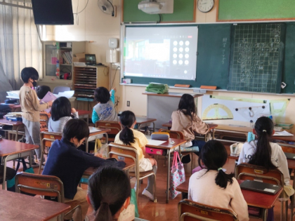 今日の集会は、学習室と各教室をオンラインで結んで行いました。
