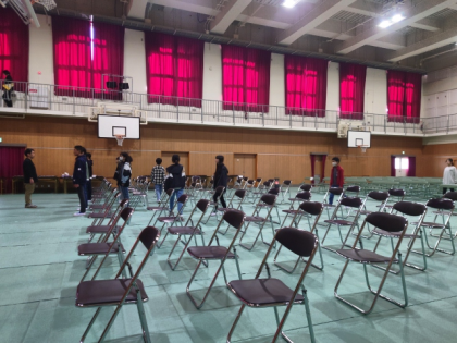 今日、卒業式の予行を行いました。