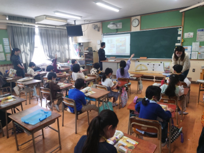英語活動の時間は、C−NET(ネイティブ)の先生に教室に来ていただき、学習しました。